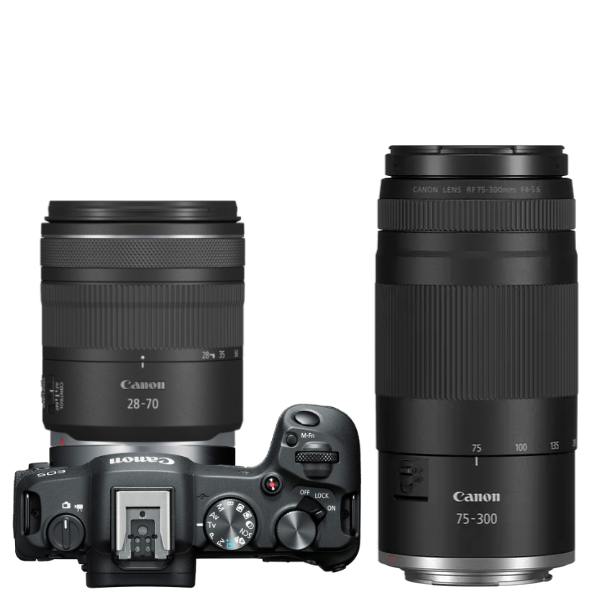 Fotocamera mirrorless con i seguenti obiettivi: RF 28-70/2.8 IS STM RF 75-300/4-5.6