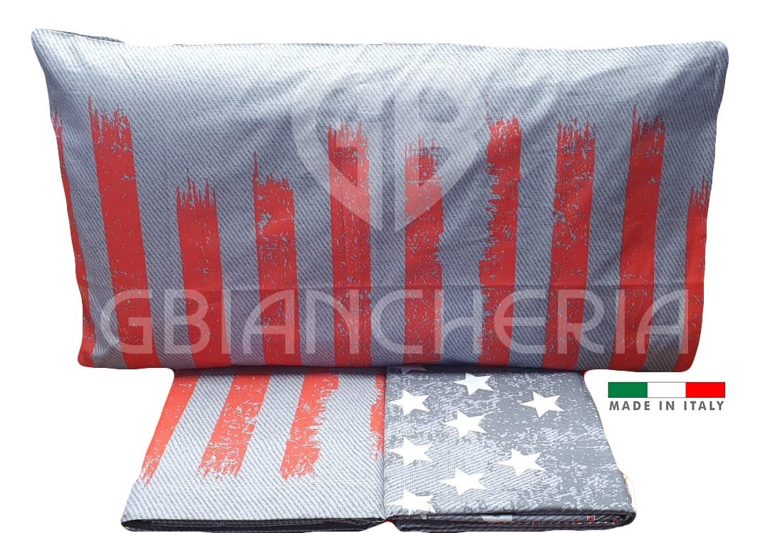 Completo letto U.S.A. grigio in 100% cotone. Made in Italy.