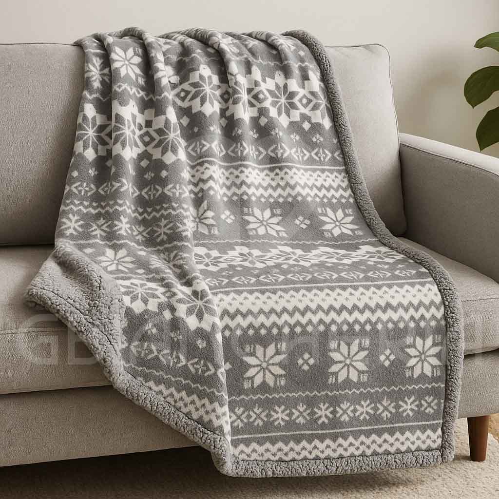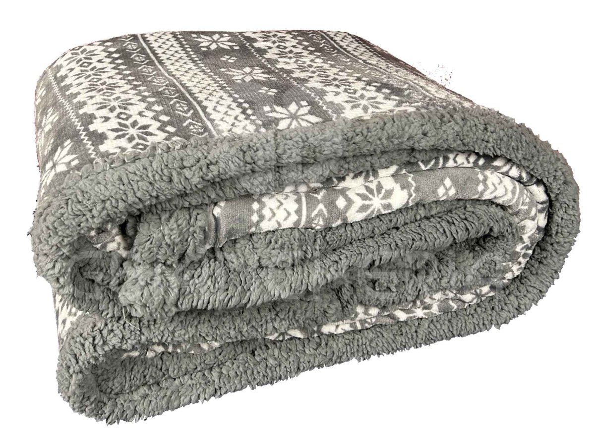 Avvolgiti nel comfort della coperta plaid sherpa double face “Lapponia”: elegante grigio, certificata OEKO-TEX, perfetta per giornate fredde grazie al suo peso ideale di 340 g/m².
