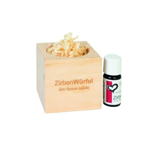 Il set originale cubo diffusore in pregiato legno di cirmolo è pensato per profumare gli ambienti domestici o l’ufficio. Basterà solamente bagnare i trucioli con qualche goccia di acqua la mattina o la sera e l’essenza di cirmolo si diffonderà in tutto l’ambiente rilasciando una sensazione di benessere e rilassamento. Per una profumazione di ambiente più intensa basta aggiungere 2 o 3 gocce di olio essenziale al truciolo decorativo di legno di pino cembro.
