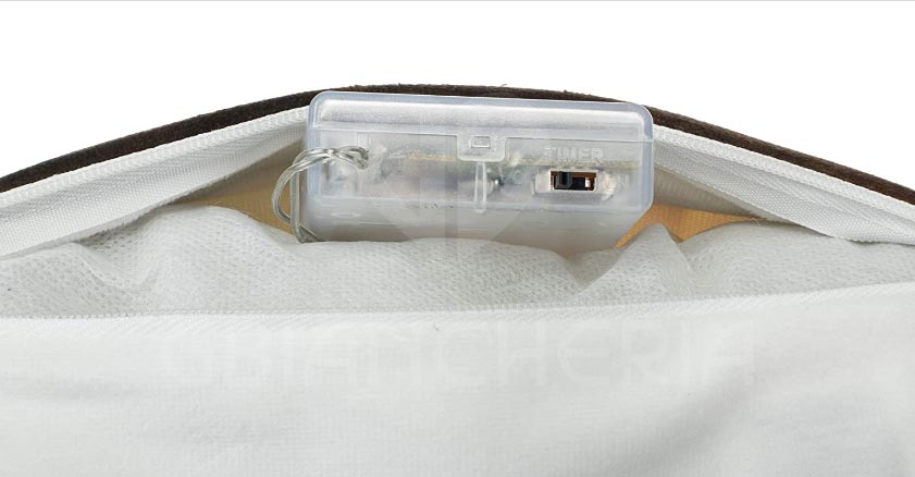 La catena di luci del cuscino ha un pratico tasto che permette di accendere e spegnere la catena luminosa.