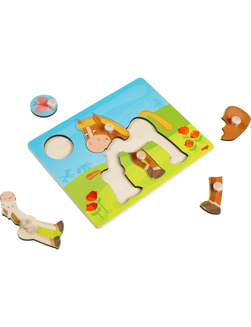 Che dolcezza questo cavallo con il suo piccolino: ricostruisci il puzzle a pomello, incastrando gli elementi al posto giusto.