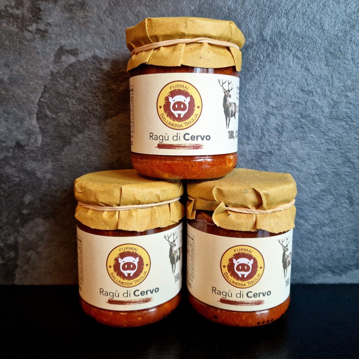 Ragù di Cervo è un prodotto realizzato a partire dall’antica ricetta della tradizione toscana, Il ragù di cervo è un condimento sfizioso e ricercato con una carne delicata e dal sapore unico perfetta da abbinare alla polenta o ai vol-au-vent oppure alla pasta, la cacciagione si sposa molto bene con tagliatelle, Paccheri o Lasagne,una variante più rustica e saporita delle famosissime lasagne alla bolognese,o come semplice accompagnamento ai funghi.