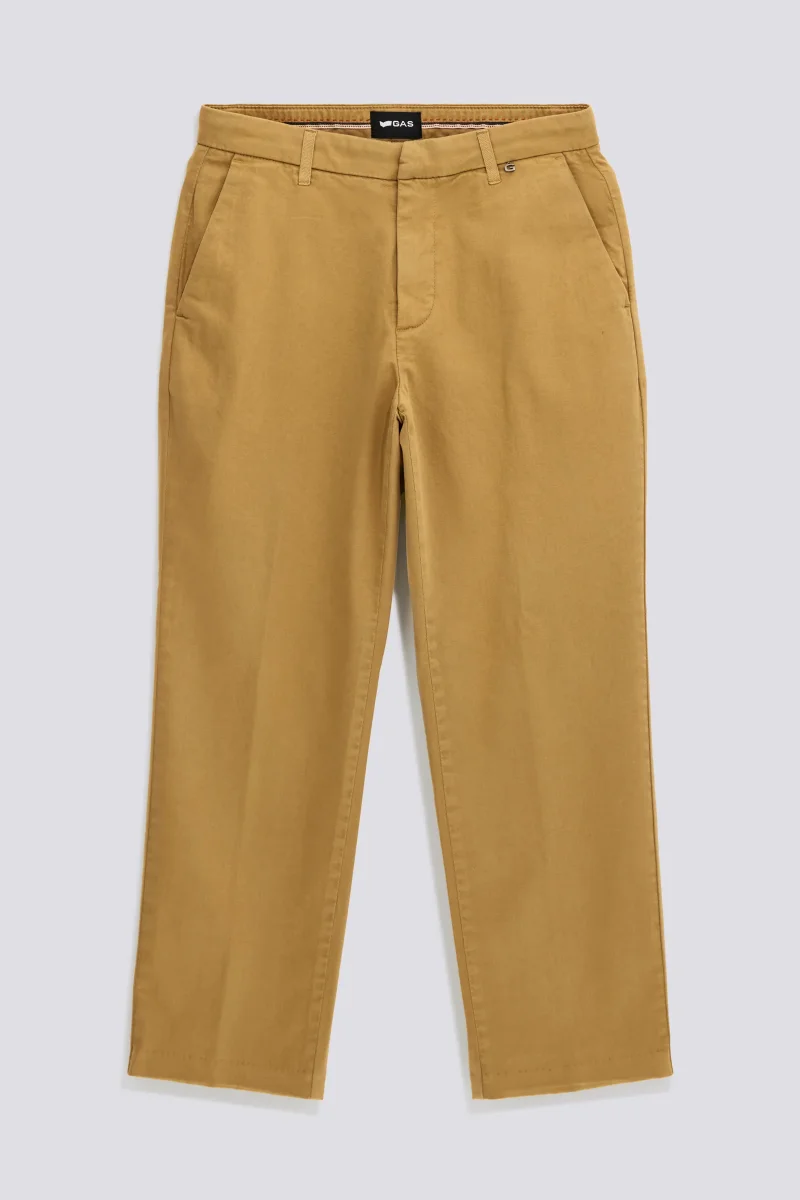 Pantalone chino donna regular fit in twill di cotone stretch tinto in capo, con passanti in grosgrain ton sur ton e sacchi tasca logati allover. Il dettaglio della placca in metallo con lettera ‘G’ sul passante anteriore aggiunge un tocco distintivo a un essenziale pensato per affrontare la giornata con stile.